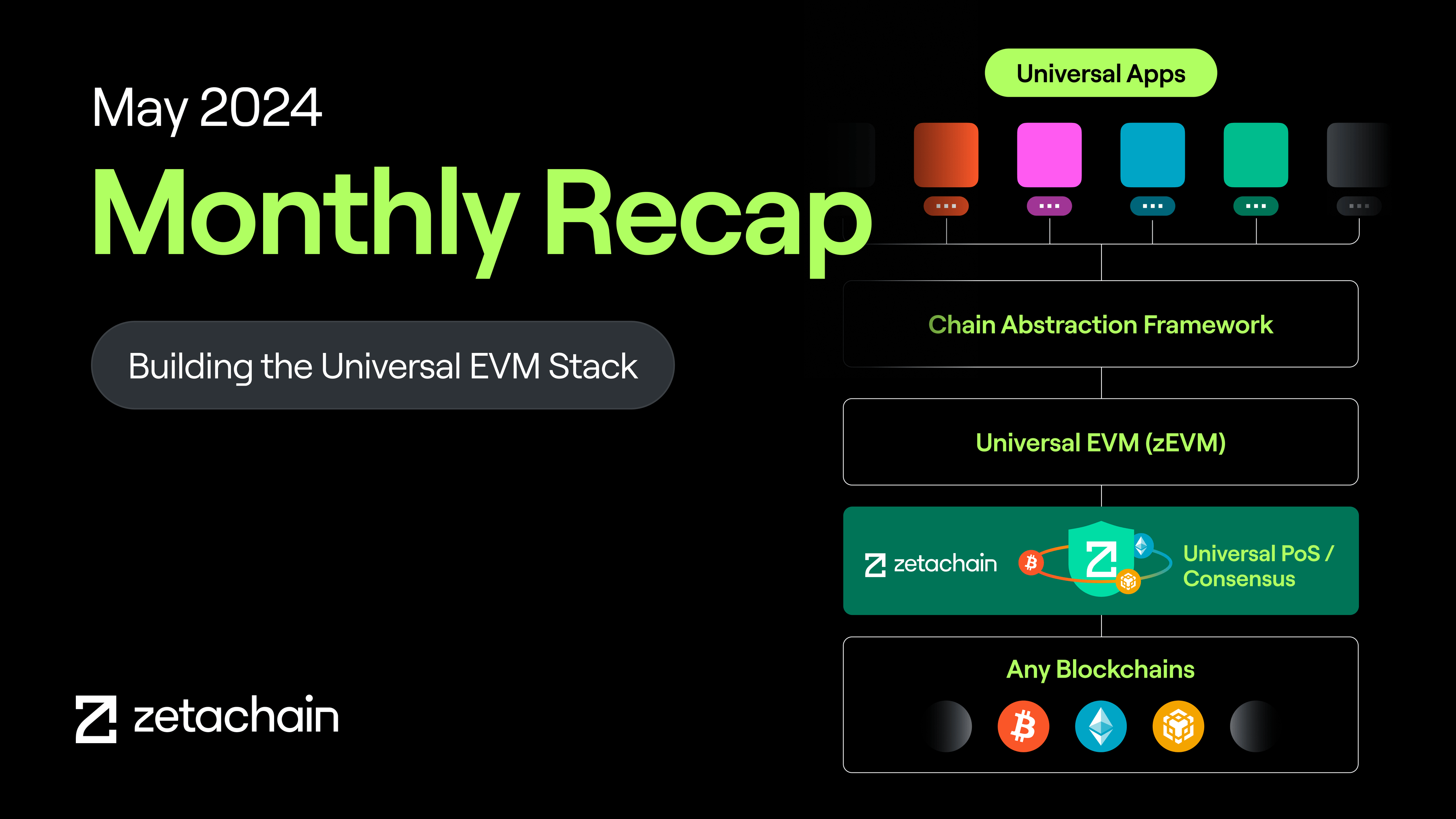 ZetaChain’s mission is to serve as a platform for universal access, simplicity, and utility across any blockchain. A key part of this effort is ZetaChain 2.0, a series of proposed upgrades by the community focused on the Chain Abstraction Framework (CAF). In order to support companies building for chain abstraction and new Universal Apps, we are actively running a dedicated Ecosystem Fund Growth Program with a focus on unlocking innovative Bitcoin apps. New exciting products and initiatives are underway leading into summer 2024, all while we continue to host and sponsor events around the world!