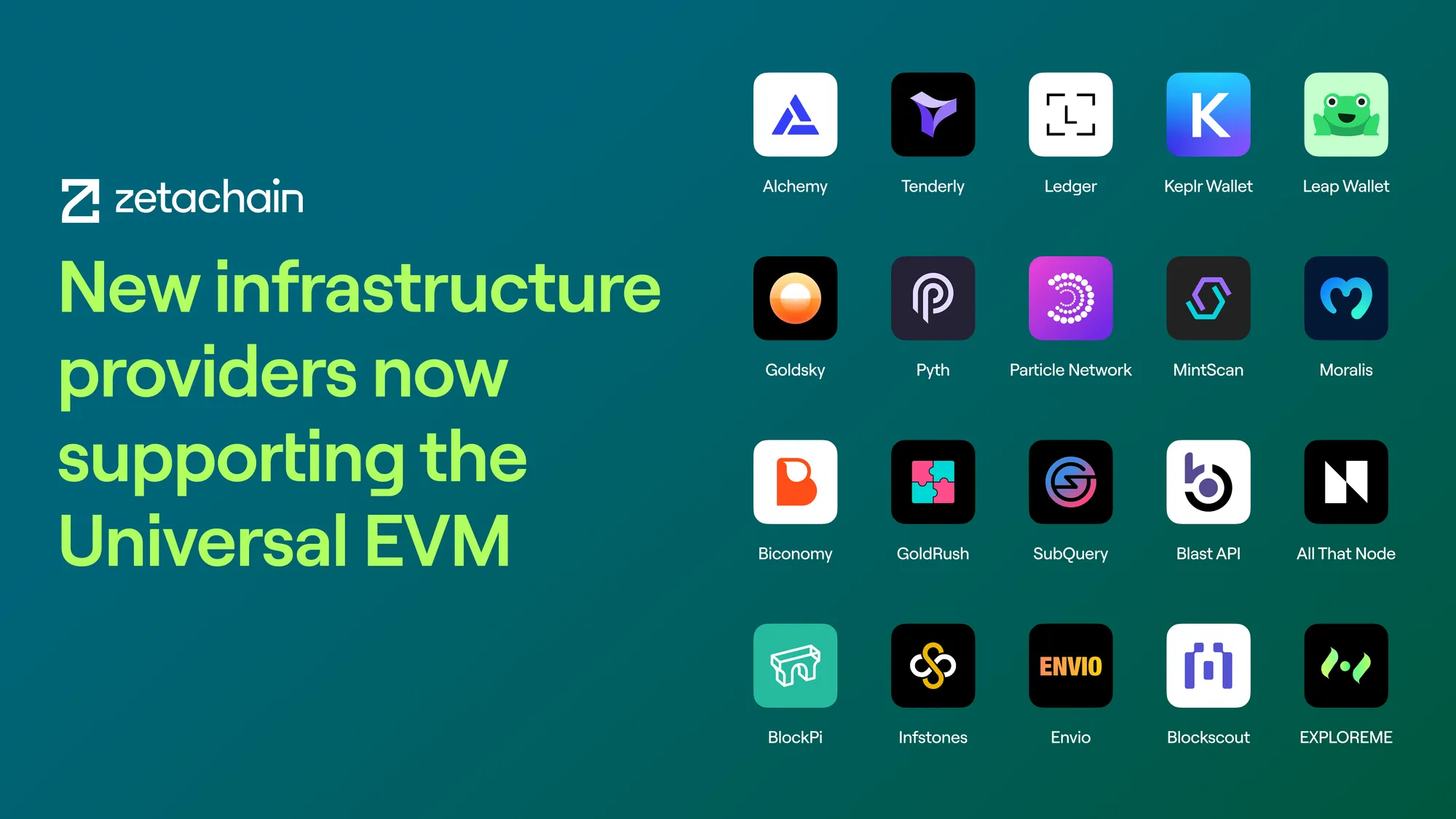ZetaChain’s mission is to serve as a platform for universal access, simplicity, and utility across any blockchain. Today, we’re proud to announce major brands like Alchemy, Tenderly, and Ledger have pledged support for ZetaChain, the first universal blockchain. ZetaChain provides extensive tooling out-of-the-box for building Universal Apps, and now we’re excited to welcome these new leading brands and many more into our ecosystem of over 125 infra providers.
