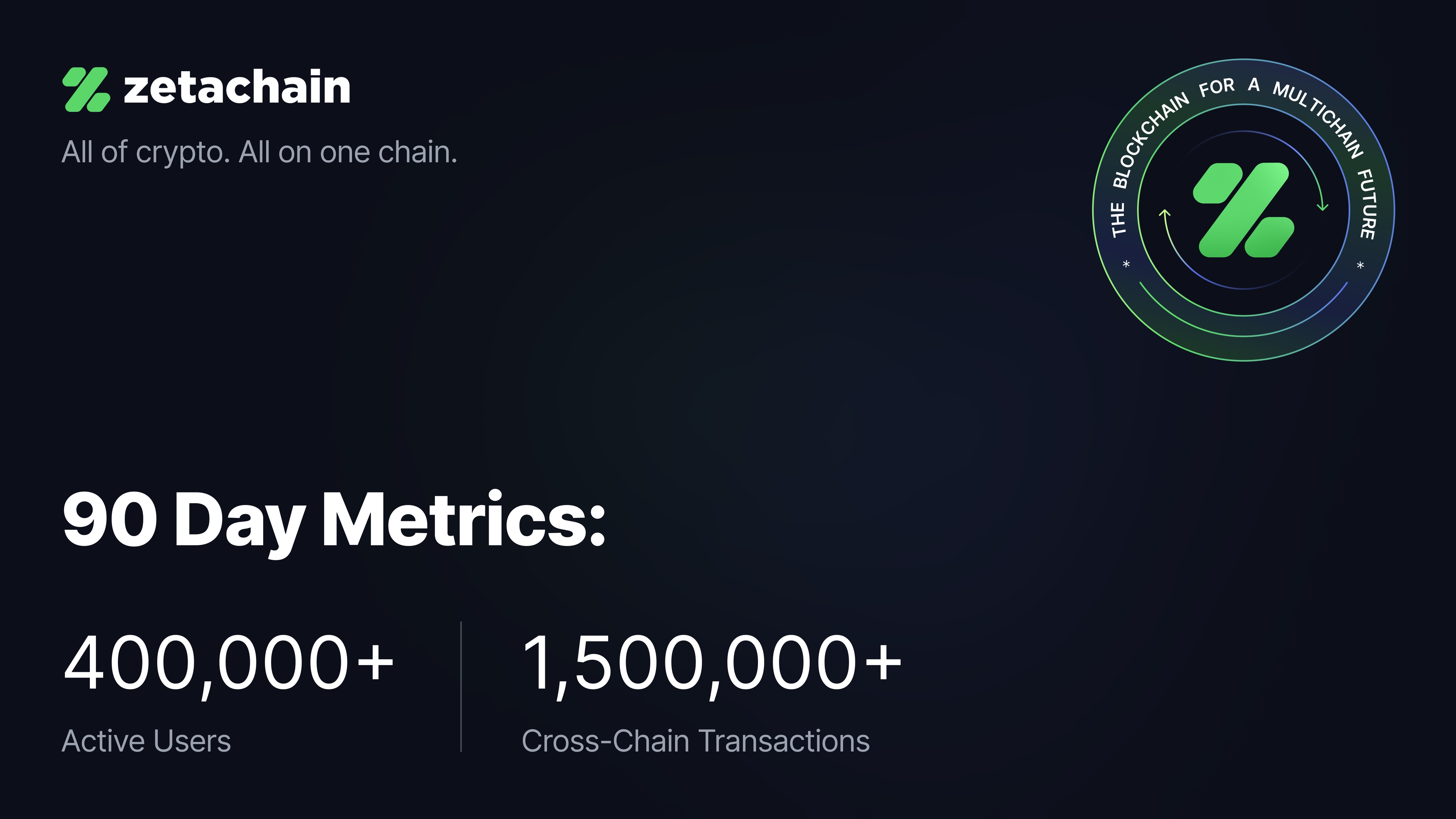 Our goal at ZetaChain is to launch the 1st public, omnichain smart contract platform. 90 days ago, we launched a native asset cross-chain Swap app to demonstrate users’ ability to achieve any-to-any token/chain trades without wrapping or locking tokens. The feedback is resounding as the crypto ecosystem is as fragmented as ever, and existing cross-chain approaches prove confusing and insecure. As ZetaChain gears up for its most highly anticipated blockchain protocol upgrade to date, we look back and review some key stats.